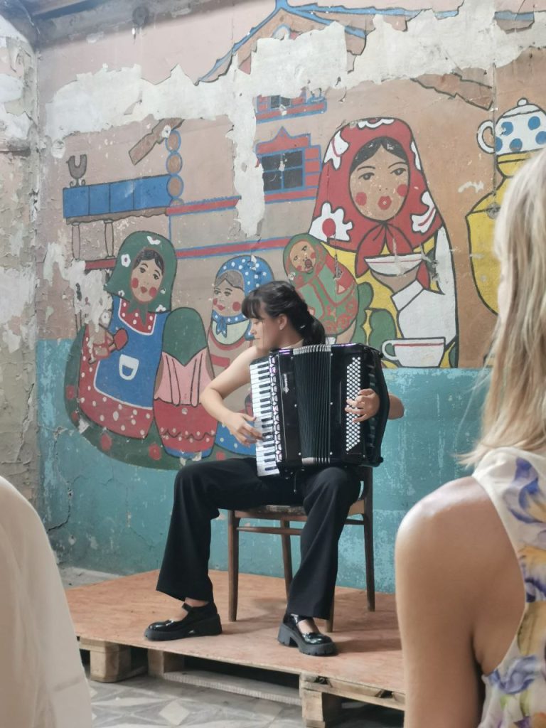 Концерт состоялся 2 августа в доме попечительского совета храмово-усадебного комплекса. Музыкальную программу представила Варвара Бурмистрова (фортепиано, аккордеон) — талантливая музыкантка из Саратова.